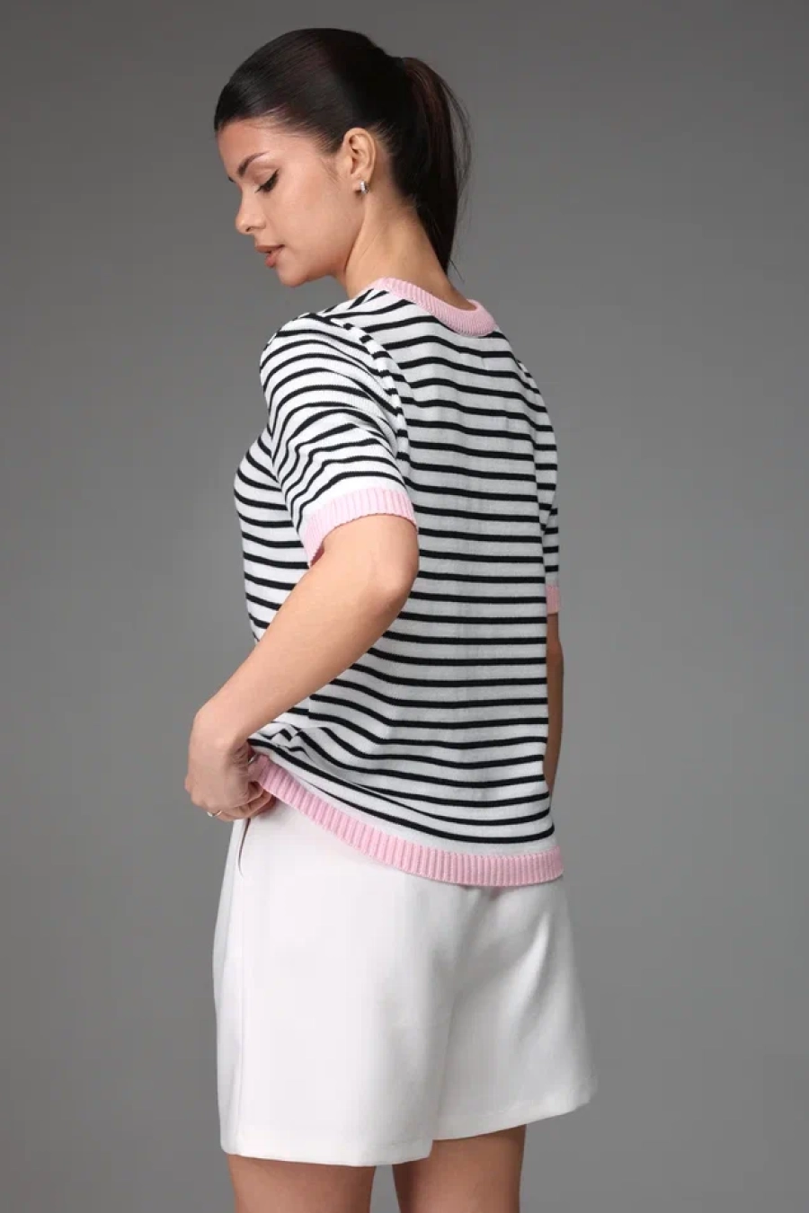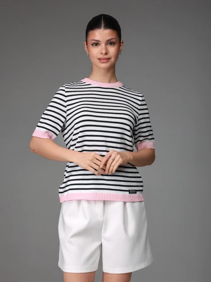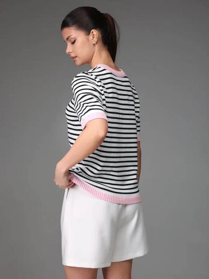 Джемпер №223 (Розовый+белый)